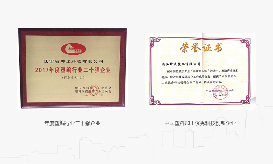 坤達(dá)集團(tuán)始創(chuàng)于2003年,是一個(gè)集技術(shù)研發(fā)、品牌運(yùn)營(yíng)、規(guī)模化生產(chǎn)的塑編包裝產(chǎn)業(yè)鏈企業(yè)。旗下三大生產(chǎn)基地為浙江坤誠(chéng)塑業(yè)有限公司、江西省坤達(dá)科技有限公司和江蘇坤達(dá)塑業(yè)有限公司,綜合實(shí)力榮登中國(guó)塑編行業(yè)十強(qiáng)企業(yè),其中浙江坤誠(chéng)塑業(yè)有限公司獲評(píng)“國(guó)家高新技術(shù)企業(yè)”、“中國(guó)科技創(chuàng)新新銳企業(yè)”、“浙江塑料包裝企業(yè)研究開(kāi)發(fā)中心”、“浙江省智能工廠(數(shù)字化車(chē)間)”、“浙江制造”團(tuán)體標(biāo)準(zhǔn)起草單位、“溫州市工業(yè)互聯(lián)網(wǎng)平臺(tái)”、“溫州市兩化融合試點(diǎn)企業(yè)”等榮譽(yù)稱號(hào)。